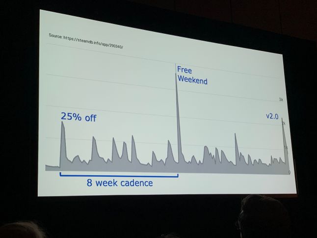 “What we found is that hte sweet spot for us is a update every eight weeks,” said Kane, referrig specifically to these free updates. “For us we’ve found you really don’t want to go longer than twelve weeks between updates, because the you’re losing players.”