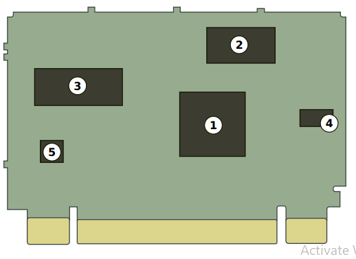 [1] The 16-bit GSU-2, the [2] 512 KiB framebuffer where the GSU writes, [3] 2MiB ROM where code and assets are stored, [4] hex inverter, and the [5] copy protection CIC chip.